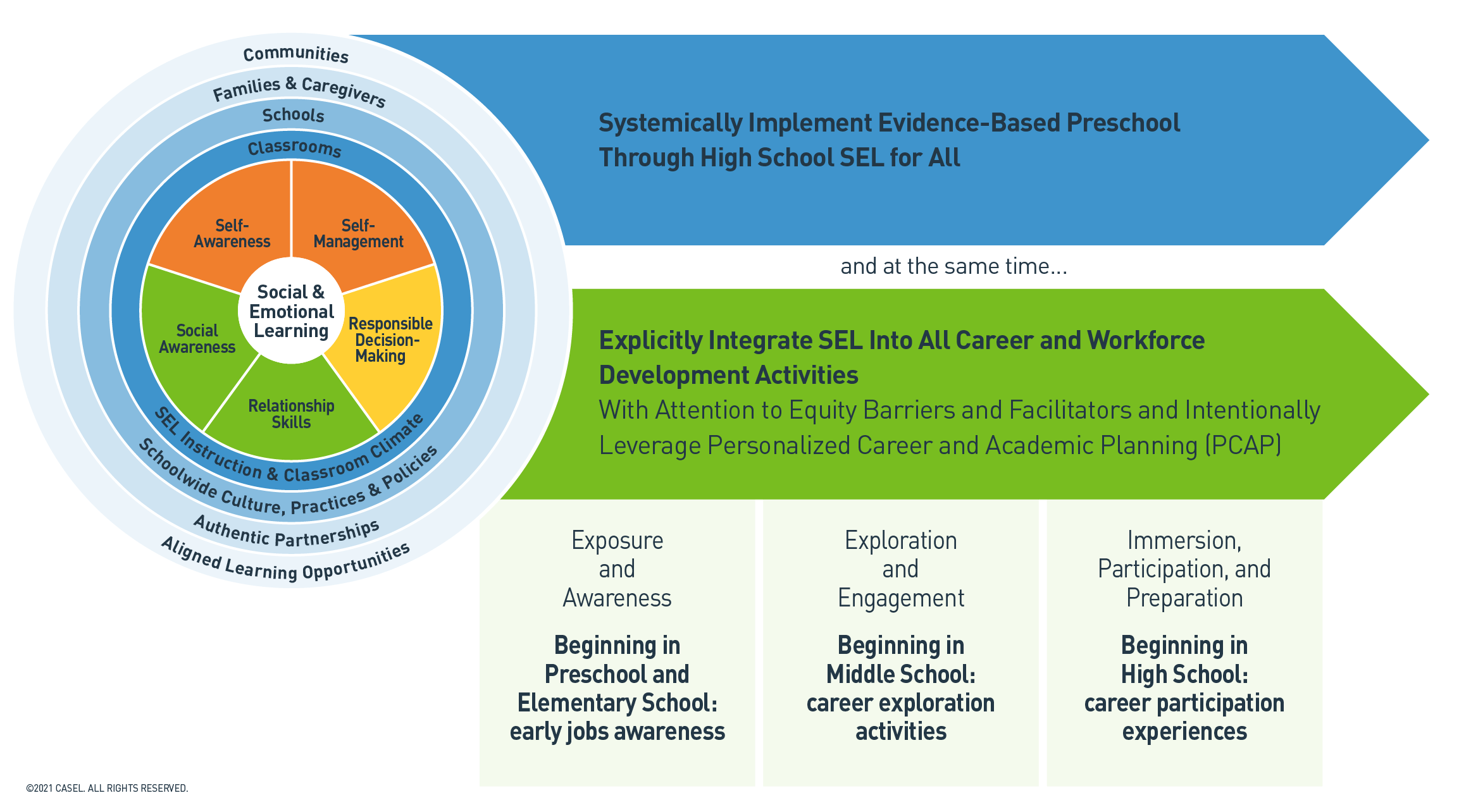 Back to topIn 2022, CASEL released a brief is to introduce a developmental framework for states working to systemically integrate evidence-based SEL with career and workforce development efforts.
