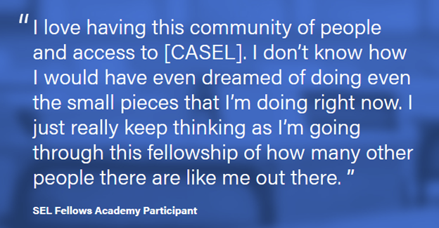 Work is also underway to lift youth voice through the SEL Ambassador Program offered in a California school. Through this youth participatory action research project, we are exploring how to create and sustain authentic, meaningful youth voice and lift up stories and bright spots showing how youth voice strengthens systemic SEL.